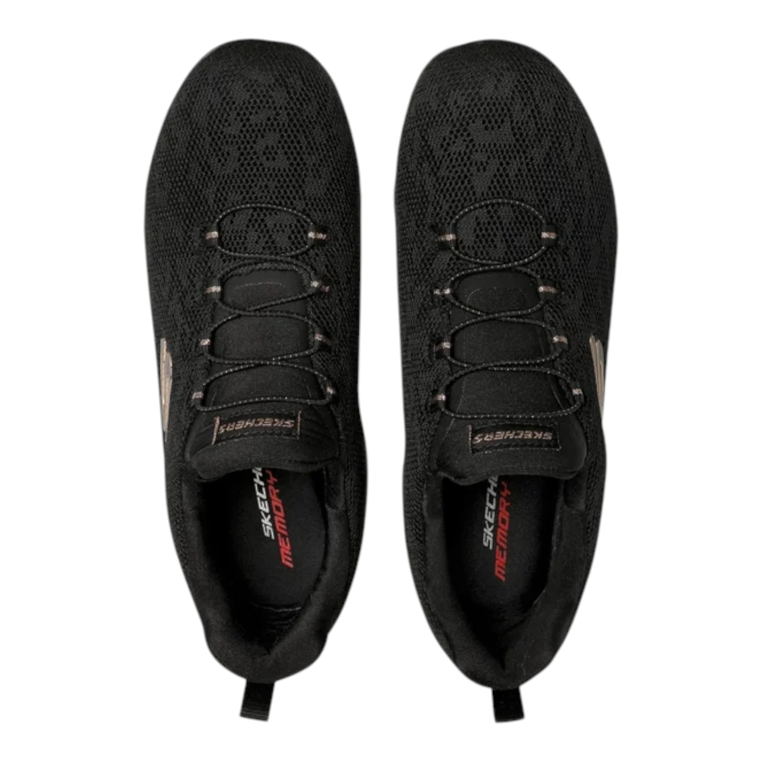 طراحی این مدل از اسکچرز، یک طراحی اسپرت-مدرن است که به راحتی با اکثر استایلهای روزمره هماهنگ میشود. رنگ مشکی کلاسیک با جزییات قهوه ای طلایی این کفش، ظاهری لوکس و همهفصل به آن بخشیده است.